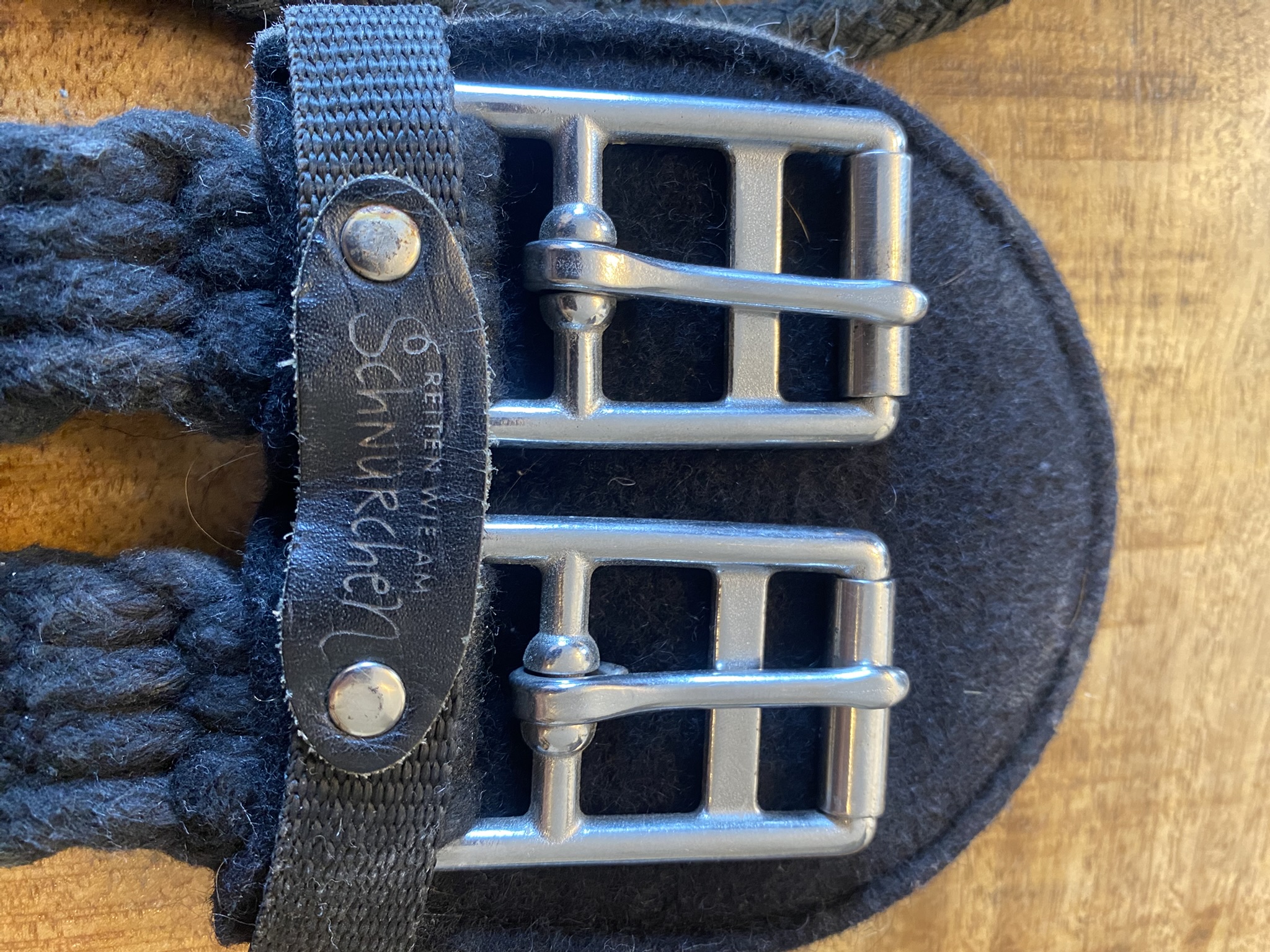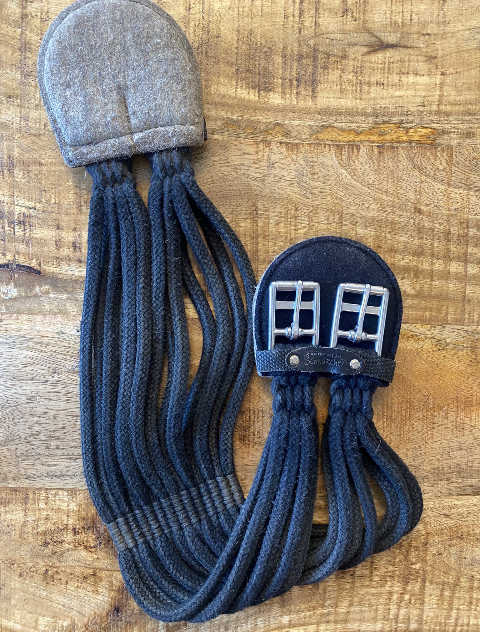 Der Schnurgurt hat Verschmutzungen, Gebrauchstspuhren sowie ein paar Haare.